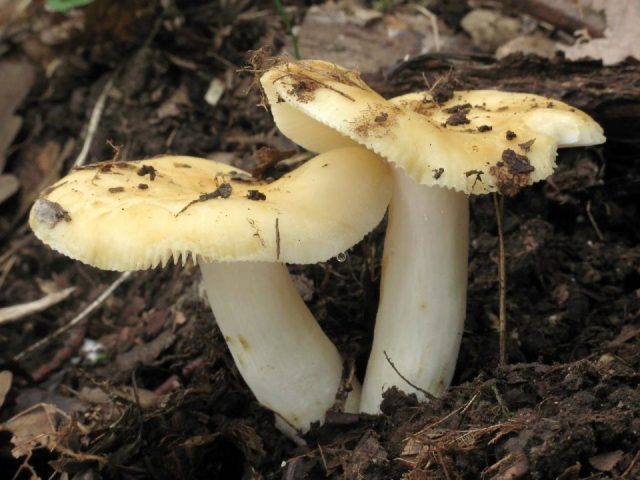 Además del agárico de mosca, su pariente más cercano, la bilis russula (Russula fellea), puede confundirse con una russula amarilla. Esta variedad se distingue por un tono ocre claro o amarillo pajizo del sombrero, que se desvanece a beige a medida que crece el hongo. La pulpa de la russula biliosa desprende geranios, el sabor es insoportablemente ardiente.