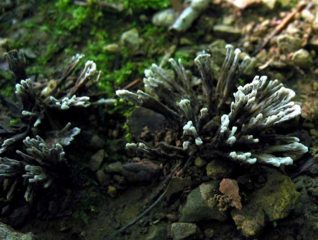 - Thelephora penicillata: pertenece a la especie no comestible, una característica distintiva son las esporas más pequeñas y el color variable;