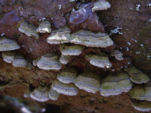 - Abeto Trichaptum - un representante más pequeño del reino de los hongos, que crece en filas o grupos en las coníferas. Los sombreros de esta subespecie son monofónicos, de color gris. La pubescencia en ellos es más notoria que en el doble representante. El color púrpura del himenóforo está bien expresado y persiste durante mucho tiempo.
