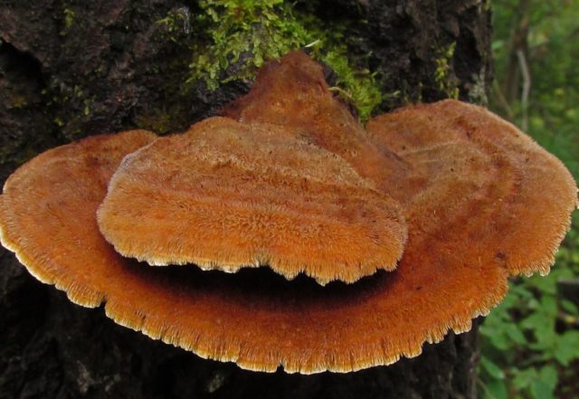 - Poliporo de pelo erizado - Pertenece al grupo de las setas no comestibles. Una característica distintiva es el gran tamaño de los cuerpos frutales.Además, es común que el gemelo se asiente en árboles de hoja ancha y frutales.