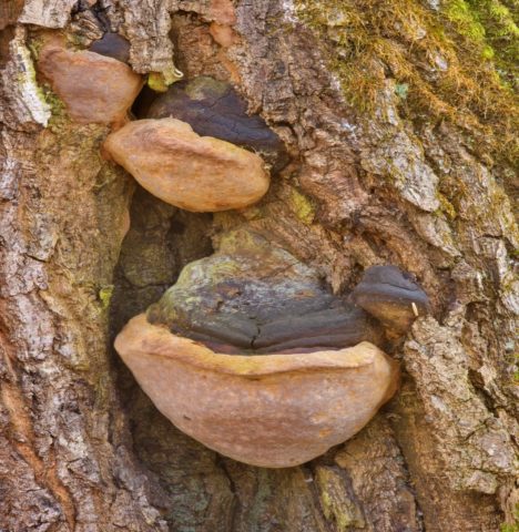 - Hongo de yesca amante del roble - la principal diferencia con las especies consideradas son los cuerpos fructíferos más masivos y redondeados. Además, hay un núcleo granular duro dentro de la base del hongo. Afecta solo a los robles, infectándolos con podredumbre marrón.