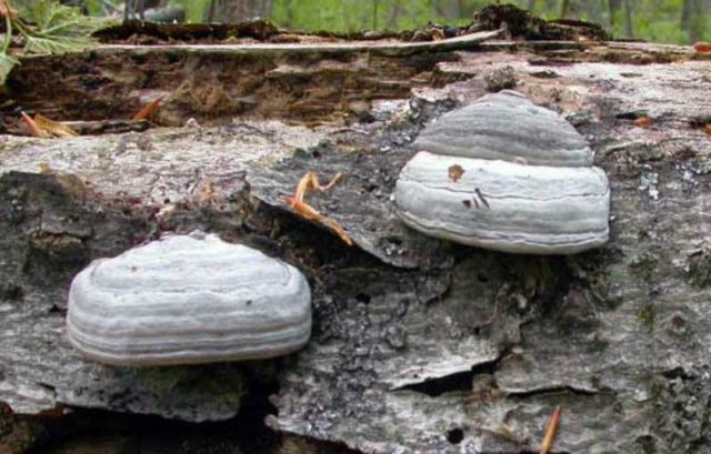 - Bordeado - una especie perenne y no comestible, que se asemeja a una pequeña pezuña en forma. La superficie con zonas concéntricas pronunciadas es gris grisáceo. La pulpa de color beige o marrón claro es densa, leñosa, insípida e inodoro. La especie es un saprófito, cuando se destruye la madera, el suelo se enriquece con nutrientes y se vuelve fértil. Los cuerpos frutales se utilizan en la medicina china para tratar trastornos sanguíneos.