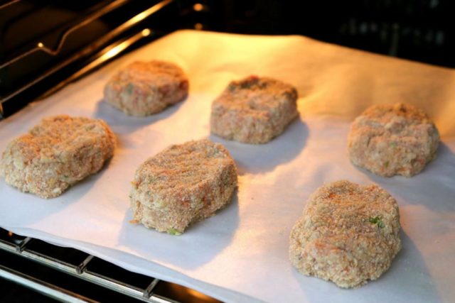 - Después de sumergirlas en harina, las empanadas se colocan en una bandeja para hornear y se colocan en el horno a 180 ° C. Deben hornearse durante 15-20 minutos.