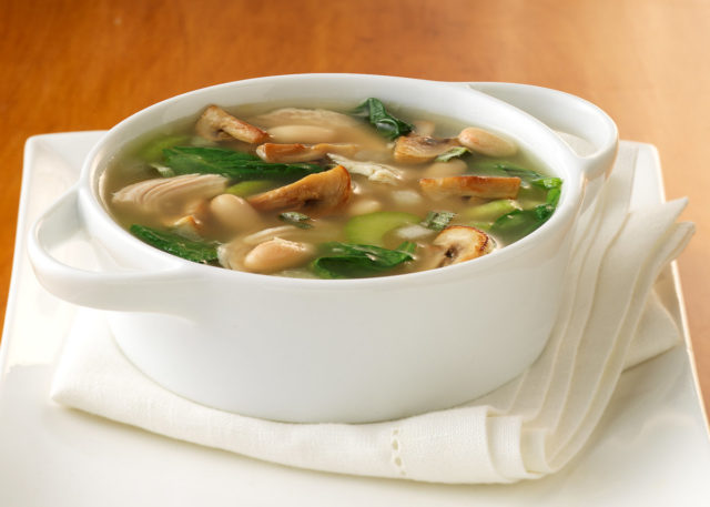- El producto hervido se pasa a través de una picadora de carne y se coloca en caldo de pollo.
