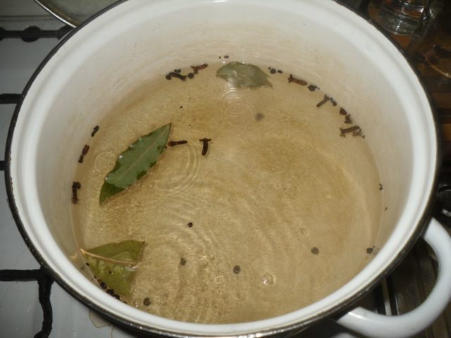 - El producto hervido se coloca en un frasco. Se coloca una hoja de laurel encima.