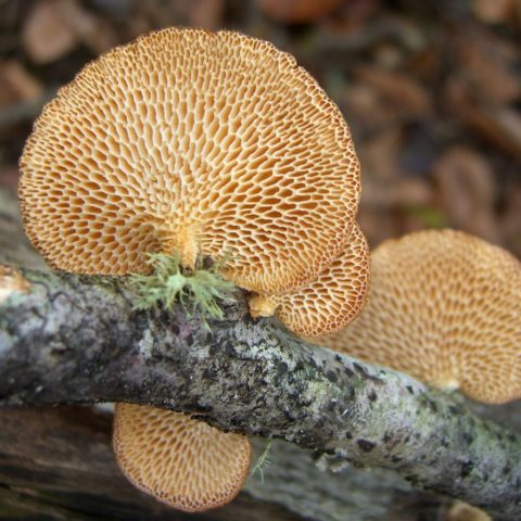 El himenóforo polyporus es una estructura celular, que se refleja en el nombre del hongo. Cada sección tiene una forma alargada y unas dimensiones de 1 a 5 mm. La profundidad puede ser de hasta 5 mm. De hecho, es un tipo de himenóforo tubular modificado. El color de la parte inferior de la gorra es ligeramente más claro que el de la parte superior.