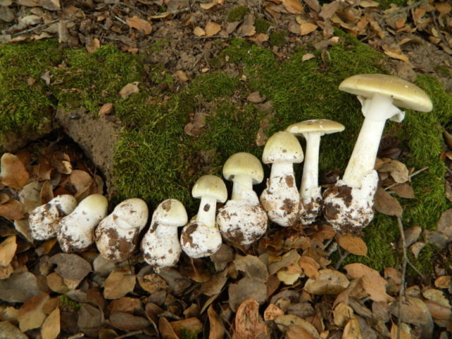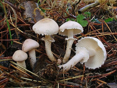 - Tapa de la muerte. Venenoso. Diferencias: una pierna más alta y gruesa surge de una volva blanca en forma de huevo. La falda anular con flecos en la pierna se dirige hacia abajo.