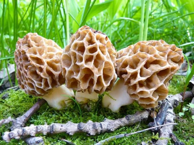 - Morel comestible - Especies condicionalmente comestibles. Lo puedes reconocer por su ligero sombrero café y su pierna blanca como la nieve. Aparece en bosques mixtos a principios de primavera. Pulpa de sabor agradable y aroma débil a hongos. Después de la ebullición preliminar, la cosecha de hongos se fríe, se cuece y se cosecha para el invierno.