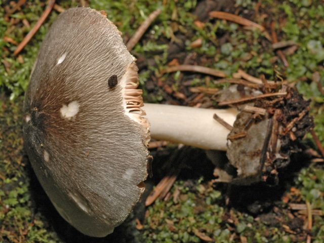El anillo está ausente, restos blancos o plateados en la raíz, los restos de un lobo velo aterciopelado que se vuelve negro a medida que crece.