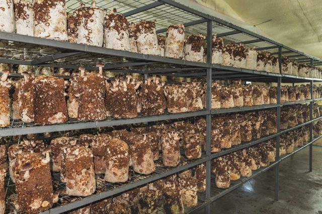 Los componentes se mezclan en una cierta proporción, luego se esterilizan e infectan con micelio.