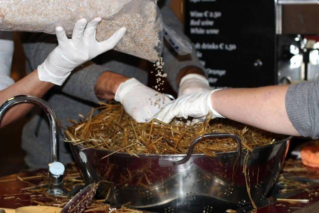 Después de hervir, el sustrato debe exprimirse, para esto puede colocarlo bajo presión o simplemente dejar que el agua se escurra de forma natural.