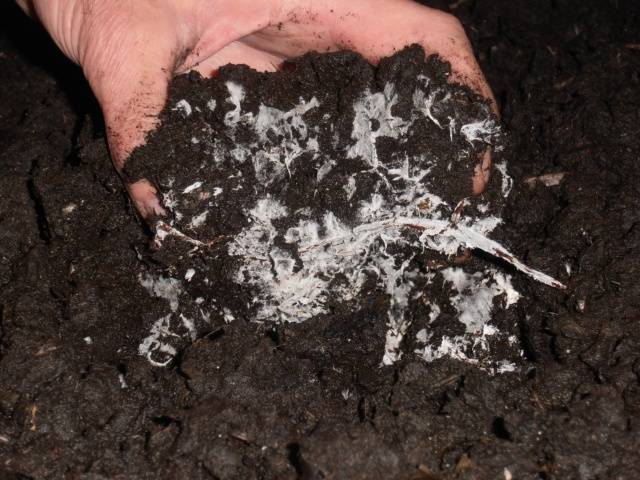 Durante la incubación, el micelio debe crecer a través del sustrato. Esto se aclarará por la aparición de hilos blancos que impregnan toda la masa dentro de la bolsa.