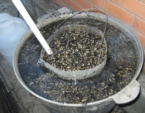 Para evitar la contaminación del micelio o de los hongos ostra maduros con infecciones u hongos, el sustrato debe ser tratado térmicamente. El procesamiento puede ser diferente, pero en casa es más conveniente utilizar el procesamiento del sustrato con agua caliente. Para esto, el sustrato se coloca en un recipiente con agua y se hierve durante 1-2 horas (dependiendo del tamaño de las fracciones).