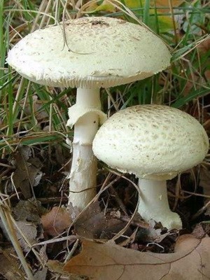 - Blanco lepiota, que también causa envenenamiento. Es un poco más grande que el paraguas de peine: el tamaño de la gorra alcanza los 13 cm, la pierna crece hasta 12 cm Las escamas rara vez se encuentran, pero también tienen un tinte marrón. Debajo del anillo, la pierna es más oscura.
