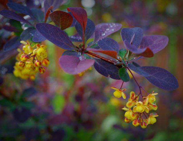 El inusual color rojo púrpura de las hojas no se ve afectado por la ubicación del arbusto (lado soleado o lado sombreado). Sin embargo, es mejor plantar agracejo de Ottawa donde hay mucho sol. Las flores de color amarillo brillante sobre un fondo de hojas de color rojo púrpura con una flor azulada son una decoración inusualmente hermosa para cualquier jardín y parcela personal.