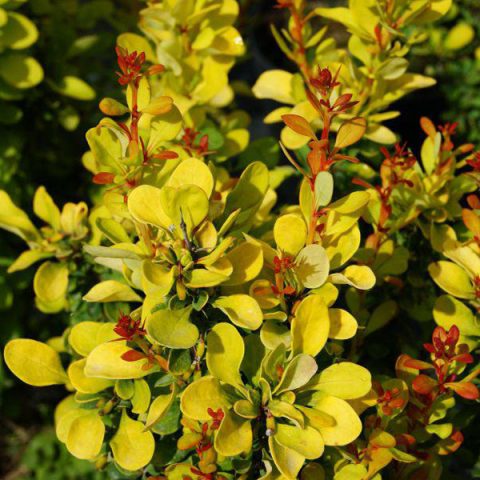 Las hojas de pequeño tamaño del agracejo Golden Rocket (como en la foto de abajo) atraen la atención por su singularidad. Las hojas son de forma redonda.