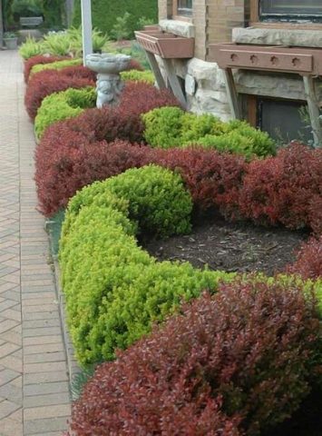 Para decorar y acentuar los senderos del jardín, una excelente solución para el paisaje son los bordillos de agracejo de bajo crecimiento con una corona esférica. Puede intentar crear una corona redonda por su cuenta a partir de un arbusto que tolera bien la poda. La colocación exitosa del agracejo decorativo en el diseño del paisaje le dará al jardín individualidad y encanto.