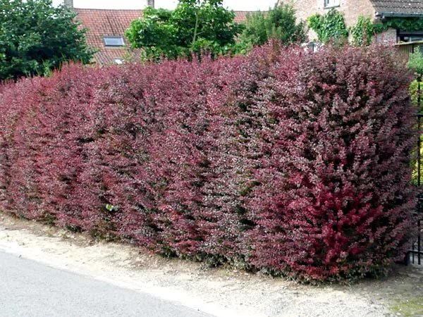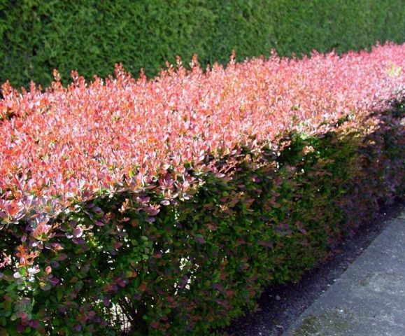 Para la zonificación del jardín, los maestros de diseño recomiendan plantar pequeños arbustos con hojas rojas, a menudo utilizando el principio de contraste. Estos setos decorativos se ven mejor cuando se recortan.