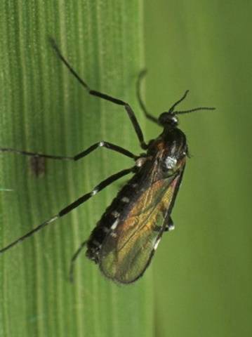 Muy familiar para los jardineros del centro y sur de Rusia. Un insecto pequeño (hasta 2 mm) tiene alas transparentes y un lomo marrón.