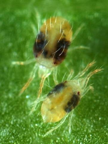 Una plaga familiar para los jardineros de todas las regiones. Es muy dañino si el árbol de frambuesa está ubicado en un lugar sombreado. Se puebla sobre inflorescencias, puntas de brotes, la plaga forma colonias enteras. Como resultado del daño de la plaga, las hojas se encrespan, los brotes se doblan y crecen mal, las flores se secan. Un insecto muy pequeño, pero muy dañino. Además del daño a los brotes, sirve como portador de enfermedades virales de las frambuesas. Más peligroso que los pulgones en años secos. Debe combatir la plaga con la ayuda de los productos químicos enumerados en la sección sobre mosquitos de las agallas.