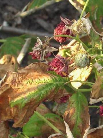 La enfermedad afecta no solo a las bayas, sino también a las hojas con brotes. Las plantas infectadas no pueden soportar el invierno y morir.