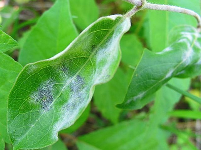 El mildiú polvoriento, una enfermedad fúngica, se reconoce fácilmente por la aparición de una flor blanca "esponjosa" en la parte inferior de las hojas. Con un curso avanzado de la enfermedad, aparece placa en ambos lados de las placas foliares. Poco a poco, se forman manchas oscuras en lugares de placa, las hojas de madreselva se vuelven marrones y comienzan a secarse, las ramas se deforman y se doblan. La enfermedad puede provocar una caída prematura completa del follaje, como resultado de lo cual el arbusto dejará de dar frutos y se volverá menos resistente a las heladas.