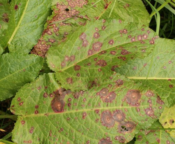 La ramulariasis es otra dolencia que representa un mayor peligro para la madreselva. Puede reconocer la enfermedad por manchas de color marrón grisáceo de forma irregular con un borde oscuro, aparecen en la primavera en las hojas jóvenes de un arbusto. A medida que la planta se desarrolla, las manchas aumentan de tamaño; en un clima lluvioso y nublado, pueden cubrirse con una flor blanca.