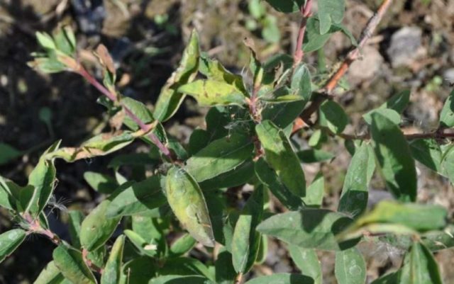 Si la madreselva crece a la sombra y con mucha humedad, el arbusto a menudo infecta al ácaro madreselva. Puede reconocer esta plaga por las manchas irregulares en la superficie inferior de las hojas y por el pardeamiento del follaje más cerca de agosto. La infección con un ácaro madreselva conduce al hecho de que al principio los bordes de las placas de las hojas se deforman, aparece una floración oscura en la superficie de las hojas y luego la corona del arbusto simplemente se cae.