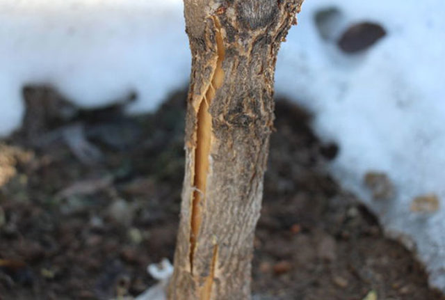 Las grietas en el tronco de un arbusto se llaman congelaciones.
