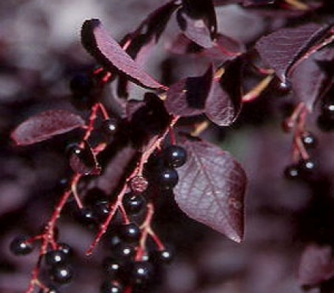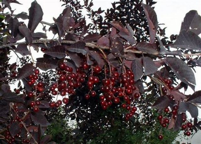 La cereza de pájaro virginiana (roja, de hojas rojas, lat. Prunus virginiana) es un arbusto o árbol ornamental de tallos múltiples, de hasta 5 - 7 m de altura con una copa ancha y extendida. Está clasificada como planta ornamental de jardín del género Plum.
