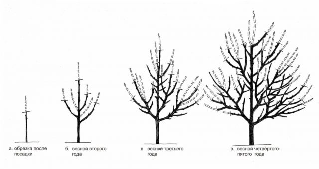 En la etapa final, la parte superior de las plántulas se puede cortar a una altura de aproximadamente 50 a 70 cm para formar el marco esquelético del futuro árbol. Pero este procedimiento no es obligatorio, se lleva a cabo a petición del jardinero.
