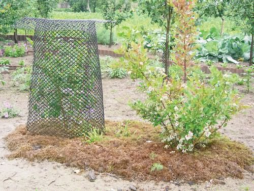 Para protegerlos de las aves, los arbustos se cubren con una red durante la fructificación.