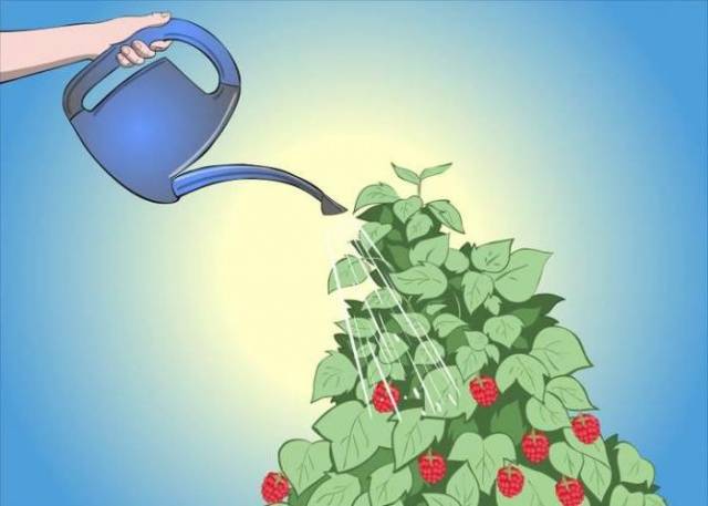 - La frambuesa es una planta amante de la humedad, necesita abundante riego. El suelo se humedece al menos 30 cm para que el sistema de raíces pueda penetrar más profundamente. El cuidado de las frambuesas en climas cálidos consiste en un riego oportuno. No permita que el terrón de tierra superior se seque. Para facilitar el mantenimiento, el riego por goteo se puede utilizar cuando se cultivan frambuesas. Se necesita un riego abundante para las plantas durante la fructificación, pero en ningún caso el agua debe estancarse, así como el secado del suelo en este momento.El exceso de humedad puede hacer que las raíces se pudran. Si hay demasiada o poca agua durante el período de cuidado de las frambuesas fructíferas, esto afecta negativamente la calidad de las bayas. A finales de agosto, el riego se reduce si llueve. Los brotes necesitan tiempo para madurar.