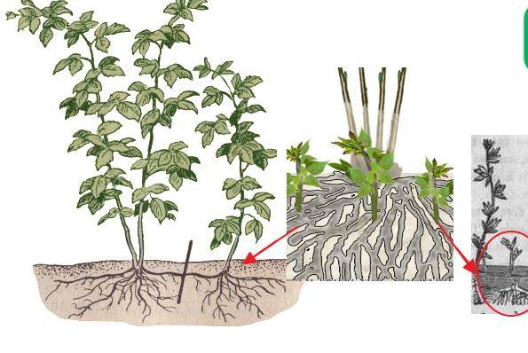 La forma más común de obtener material de siembra es propagar las frambuesas mediante chupones de raíces. Están ubicados a una distancia de 30 cm del arbusto madre, crecen a partir del brote adventicio durante el verano.