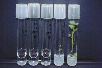 La reproducción microclonal de frambuesas se realiza en condiciones de laboratorio. Se utiliza un trozo de tejido vegetal para obtener una nueva planta; las frambuesas se cultivan en un tubo de ensayo. Mira la foto de abajo, ¡realmente interesante!
