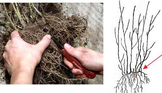 En el otoño, la descendencia se extrae con cuidado para no dañar las raíces. Después de eso, debe revisar el material de siembra. Si el tallo tiene hinchazón o manchas azuladas, no se puede utilizar para la propagación.