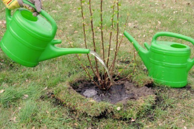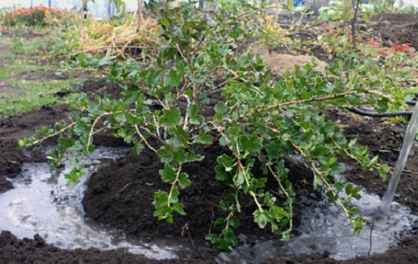 - Regando. La variedad de primavera tolera bastante bien la sequía, pero para un mejor crecimiento y rendimiento, se debe tener cuidado de que la planta reciba suficiente humedad durante la temporada de crecimiento. En el período comprendido entre finales de julio y principios de agosto, se forman los brotes futuros.La frecuencia recomendada de riego en este momento es de 1 a 2 veces por semana, 1 cubo por arbusto de grosella espinosa Yarovaya adulto. El riego debe realizarse desde la parte inferior alrededor de las ramas, sin afectar el follaje. En un clima soleado, las hojas mojadas pueden quemarse y en un clima nublado, una superficie húmeda puede convertirse en una fuente de diversas enfermedades.