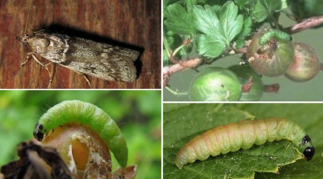 - Polilla de la grosella espinosa - una mariposa gris parecida a una polilla pone hasta 200 huevos, de los cuales nacen orugas de color verde claro, que dañan y destruyen las semillas y la pulpa de las bayas.