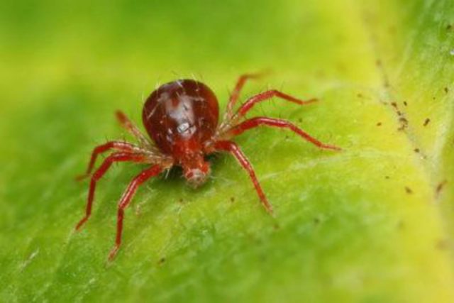 - Araña roja común - un insecto de menos de 1 cm de tamaño vive en el envés de las hojas, que están cubiertas de motas, se vuelven amarillas, se deforman, se secan y se caen.