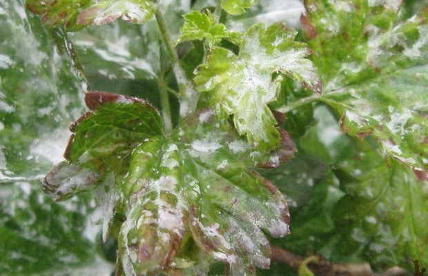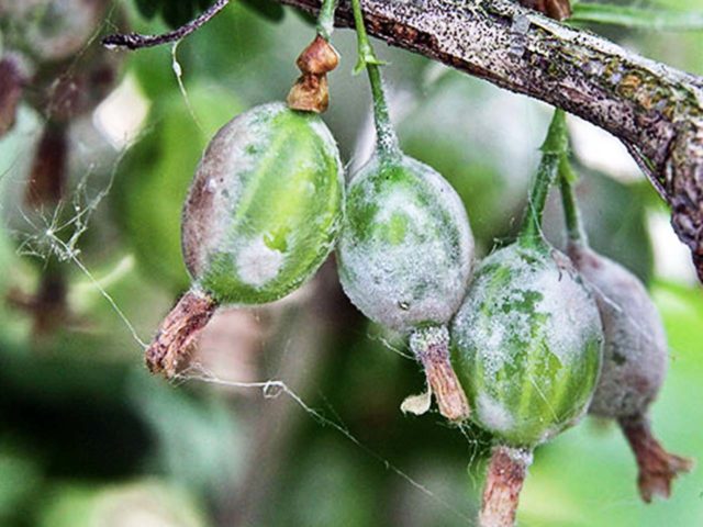 - Spheroteka - mildiú polvoriento americano. Una enfermedad fúngica que afecta a todas las partes del arbusto, primero con una harina blanca y luego con una flor densa. Las hojas se secan y se caen, las bayas se agrietan.
