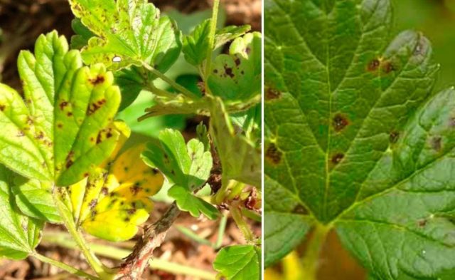 - Antracnosis - un hongo marsupial que aparece en zonas de clima húmedo. Aparecen pequeñas manchas oscuras en las hojas viejas inferiores, que luego se fusionan. La enfermedad puede provocar una exposición casi completa de los arbustos en la segunda mitad del verano, la muerte de los brotes y una disminución del rendimiento.