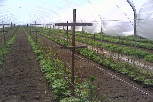 - A principios de la primavera, se examinan los tallos invernados y se cortan los tallos secos o dañados. De los tallos restantes, se seleccionan los más fuertes y poderosos (a razón de 15-18 por metro de fila), el resto también se cortan. En caso de daño en la parte superior del tallo (podría congelarse en invierno), se corta y deja un cogollo sano;