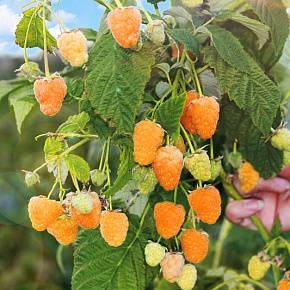 Las bayas son hemisféricas y pesan hasta 3,8 gramos. Se ubican sobre un tallo corto, bien separados. Cuando se arrancan y procesan, las partículas no se separan, las frambuesas conservan su integridad. Las bayas tienen una ligera pubescencia, en una etapa temprana de maduración son amarillas, ligeramente maduras adquieren el color de un albaricoque.