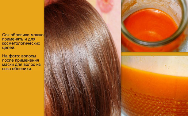 El concentrado natural de espino amarillo está saturado de nutrientes que ayudan a cuidar la piel, el cabello y las uñas. Los cosmetólogos usan el producto en su forma pura, hacen máscaras, baños. Sobre la base de concentrado aceitoso de espino amarillo, hay cremas, champús.