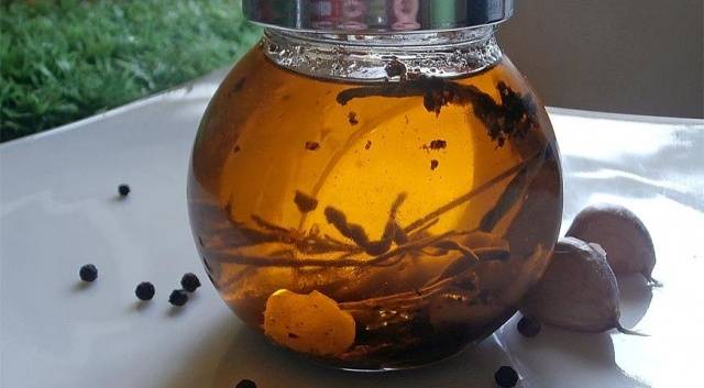 - El ajo finamente picado se vierte con concentrado de espino amarillo, se calienta durante 15 minutos. Las velas se forman a partir de la masa resultante y se envían al refrigerador para su solidificación. Cuando aparecen los nodos internos, se inyecta una vela una vez al día. El curso tiene una duración de hasta 10 días.