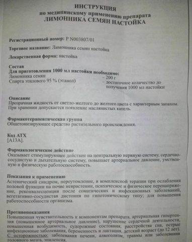 Los médicos que trataron a los faraones han estudiado los beneficios de la tintura de semillas de limoncillo. Los curanderos tradicionales también usaron un remedio para ayudar a restaurar la inmunidad. Hoy la planta también es reconocida por la medicina oficial. El medicamento está a la venta en la cadena de farmacias. La herramienta pertenece a las drogas tónicas.