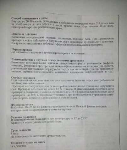 - El uso de la tintura tiene un efecto beneficioso sobre el sistema nervioso, por lo tanto, la eficiencia del paciente aumenta, la somnolencia desaparece debido al efecto psicoestimulante.