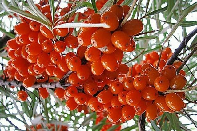 Pulgón del espino amarillo, ácaro de la agalla | Eliminación oportuna de malezas y residuos vegetales. | Productos químicos: Intavir, Kleschevit. Remedios caseros: infusiones repelentes de tabaco, cáscara de cebolla o ajo, puntas de patata y tomate. |