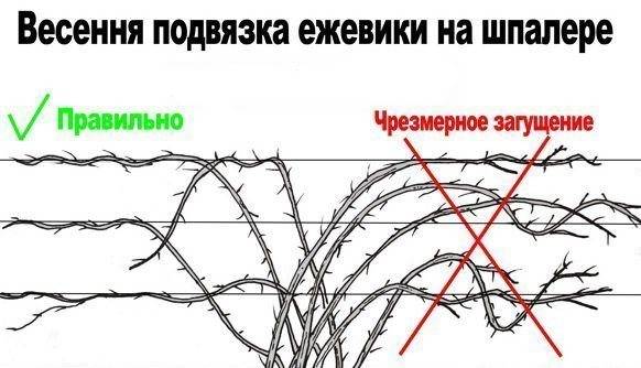 Inmediatamente después del final de la poda de primavera, todas las ramas se retiran del sitio y se queman. Las plagas hibernaban en la corteza dañada y es necesario deshacerse de ellas. Los arbustos cortados se atan al enrejado de acuerdo con uno de los esquemas seleccionados.