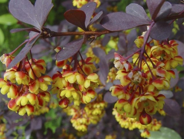 Las flores del agracejo Superba con un olor agradable se recogen en cogollos racimosos limpios. Hay hasta 10 piezas por cepillo. El color de las flores es amarillo con un tinte rojizo, longitud - 4 cm.